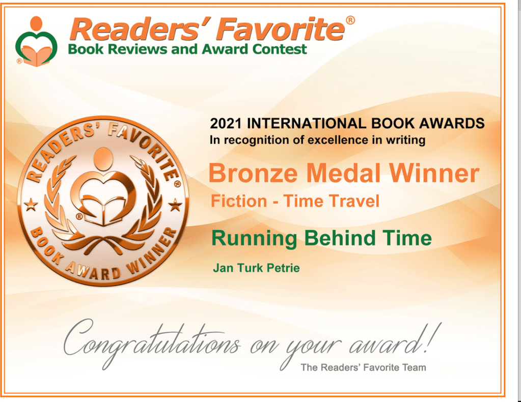 Running Behind Time has just been awarded a bronze medal in the 2021 Readers’ Favorite International Awards. As I’m not able to attend the award ceremony in Miami, they will send the medal by post.