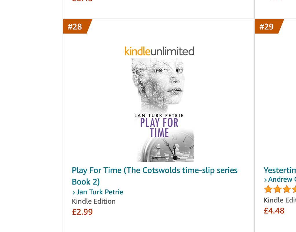 ‘Play For Time’ has only just been published on Amazon. (Still waiting for the paperback to become available in UK) However, it’s already reached # 28 in Amazon’s UK time-travel category.